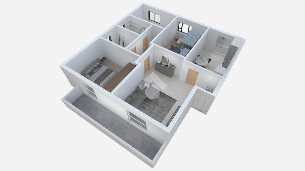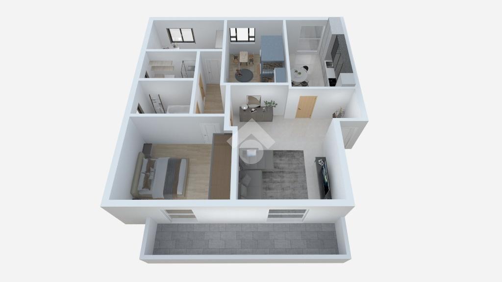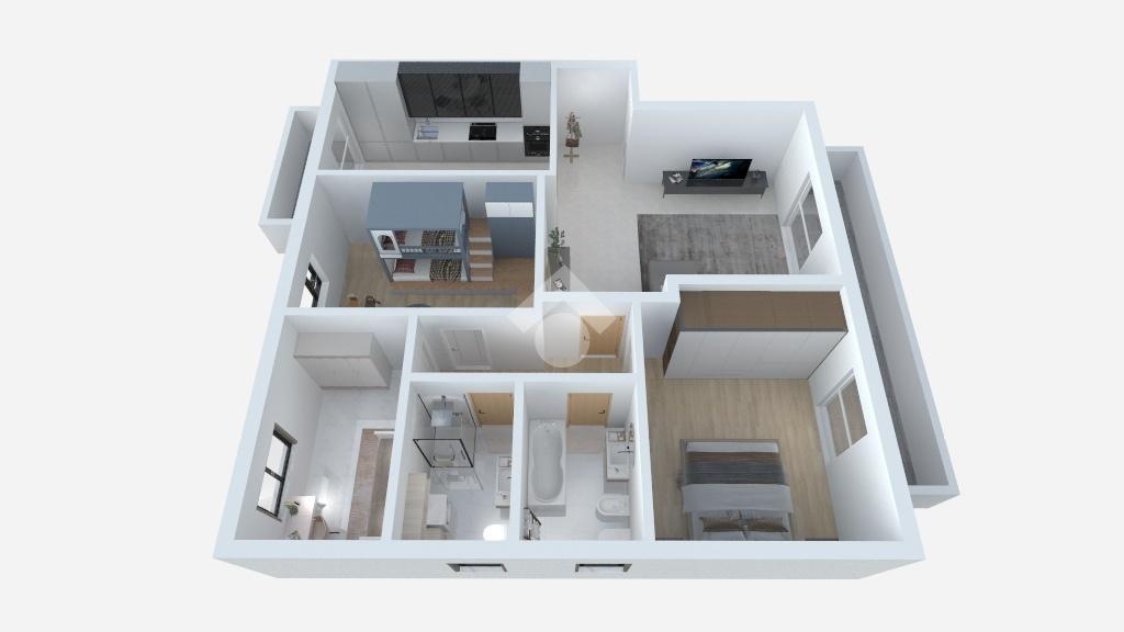 Le tre camere da letto sono ampie e ben illuminate, mentre i due bagni finestrati offrono luminosità e ventilazione naturale.