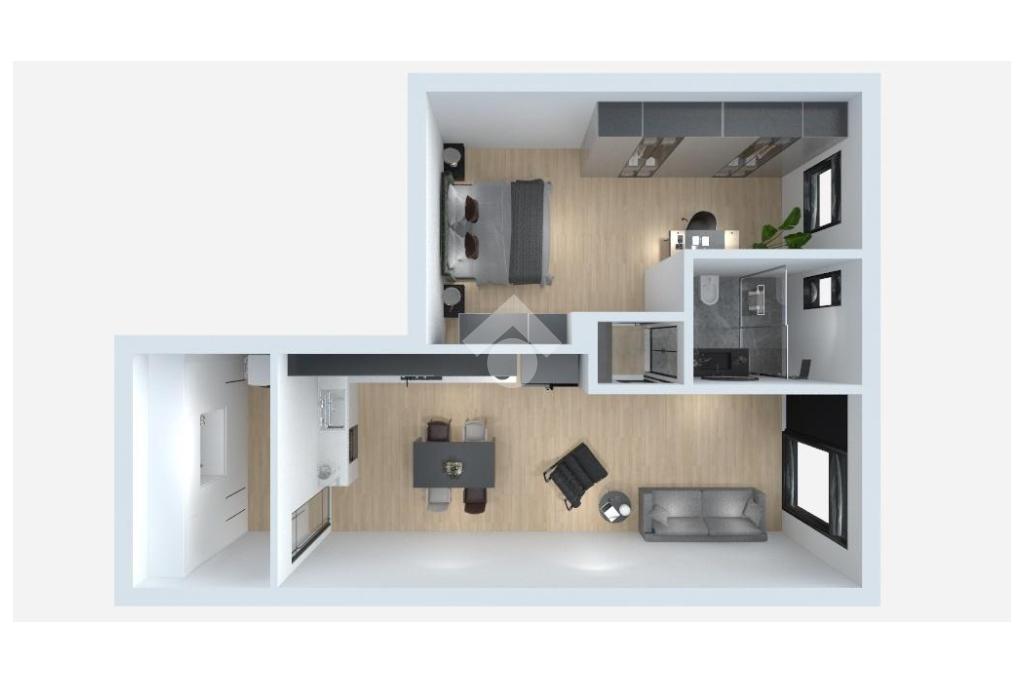 È già stato approvato il progetto di ristrutturazione che prevede una luminosa zona giorno open space di circa 30 mq con cucina e soggiorno, affiancata da una lavanderia/sgabuzzino di circa 7 mq. La zona notte è composta da bagno finestrato di circa 5 mq e ampia camera matrimoniale di oltre 20 mq.